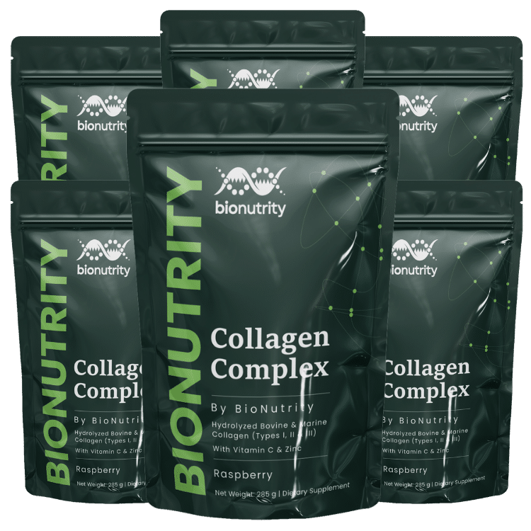 Collagen Complex von BioNutrity ist eine komplette, fortschrittliche Kollagenformel, nicht nur einfaches Kollagenpulver. Es kombiniert hydrolysierte Kollagenpeptide mit sorgfältig ausgewählten Nährstoffen, die die Kollagenbildung und -aufnahme im Körper unterstützen.